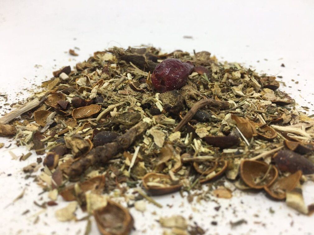 Состав: корень солодки, зверобой, корень элеутерококка, скорлупа кедрового ореха, корка лимона, шиповник.