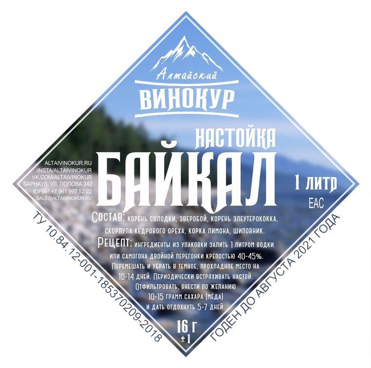 Набор трав и специй Байкал от компании "Алтайский винокур". Набор для настойки позволит приготовить 1л готового напитка.