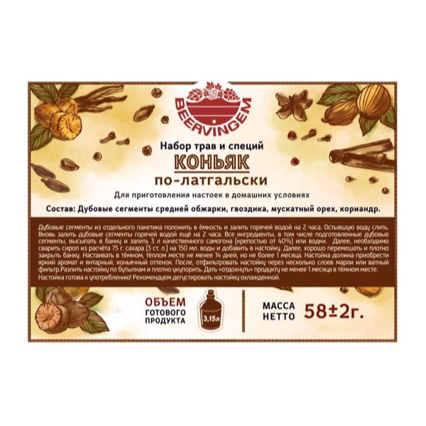 Набор трав и специй Beervingem Коньяк по-латгальски, 35 г. Объем готового напитка 3.15л.