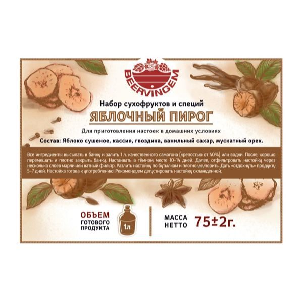 Набор сухофруктов и специй Beervingem Яблочный пирог, 75 г. Объем готового напитка 1л.