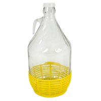 - Пластиковая корзинка, в которую помещена емкость, дополнительно защитит от механических воздействий, благодаря наличию ручки, очень удобно разливать напитки.