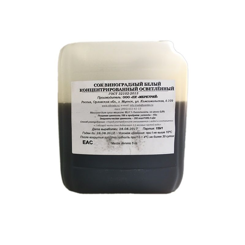 Сок концентрированный из белого винограда. Сок имеет массовую долю сухих веществ (Brix) 65%.